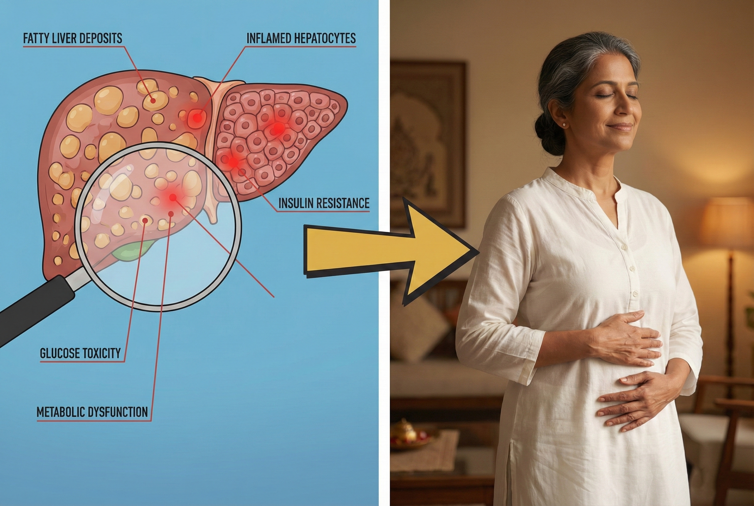 58 years old. 14 years diabetic. Exposed to Metformin 1000mg, Glimepiride, even started insulin 6 months back. Sugar still 200+. Wife saw Dr. Mishra's video about 3-stage metabolic collapse — finally made sense! My liver was the problem, not just pancreas. Week 1: fasting came to 168. Week 4: 139! Week 10: Doctor reduced my insulin by HALF. Glycoveda Pro ne woh kiya jo 14 saal medicines nahi kar payi.